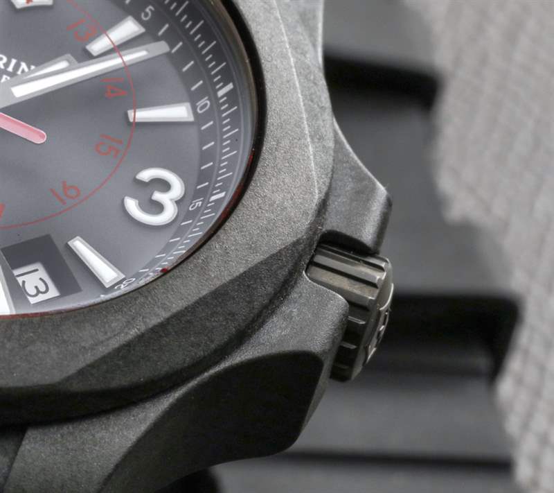 Victorinox Swiss Army INOX Carbon 推出首款黑色 INOX 表殼,并為該品牌使用了輕質材料。我很確定 Victorinox Swiss Army INOX Carbon 的開發始于該品牌希望擁有一款黑色版本的手表。他們決定像其他品牌(尤其是高端品牌)一樣流行,并使用高科技碳材料,而不是簡單地做一個涂層金屬外殼。