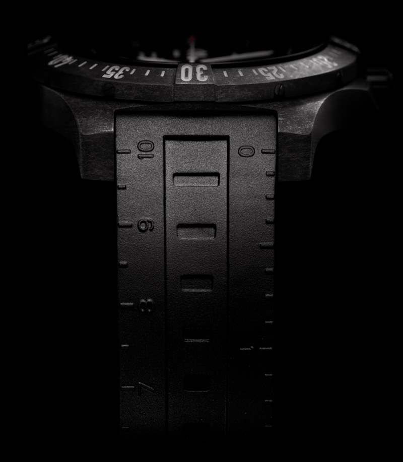 百年靈進(jìn)一步聲稱,Breitlight 表殼超級耐用且抗震。它也具有不錯的抗刮擦性,但我確實認(rèn)為,盡管手表經(jīng)受住了虐待,但如果被毆打太多,它會留下戰(zhàn)斗傷痕。如果你還記得的話,我提到了表帶上的那個尺子。手表顯然有一個用于表帶的快速釋放系統(tǒng),因此可以將它們?nèi)∠虏⒂糜趯嶋H測量物體……然后放回表殼上。