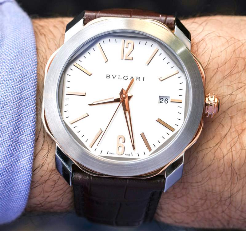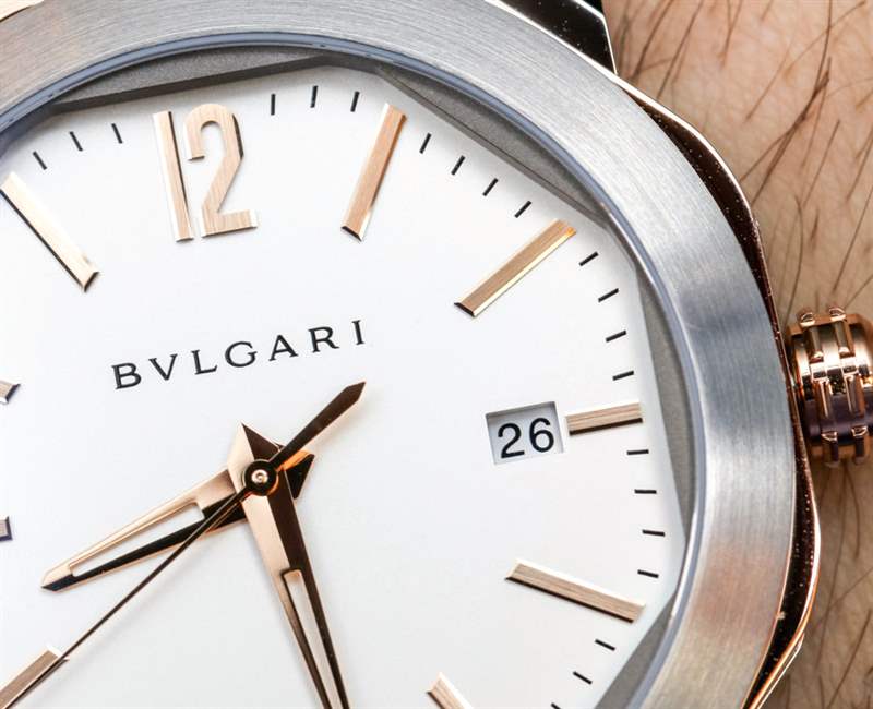 寶格麗 Octo Roma 對(duì)原始 Octo 進(jìn)行了許多小改動(dòng),包括表殼和表盤。寶格麗 Octo Roma 的表盤看起來與其他 Octo 表款大致相同,但指針和時(shí)標(biāo)的比例不同。同樣,這些差異是微妙的,但對(duì)于確保 Octo Roma 感覺像 Octo 很重要,但在它自己的皮膚上看起來盡可能好。這種設(shè)計(jì)改進(jìn)有助于定義許多最優(yōu)雅的高端手表,但對(duì)于大多數(shù)沒有接受過模擬手表設(shè)計(jì)細(xì)微差別培訓(xùn)的消費(fèi)者來說,這在佩戴體驗(yàn)中幾乎是完全透明的。