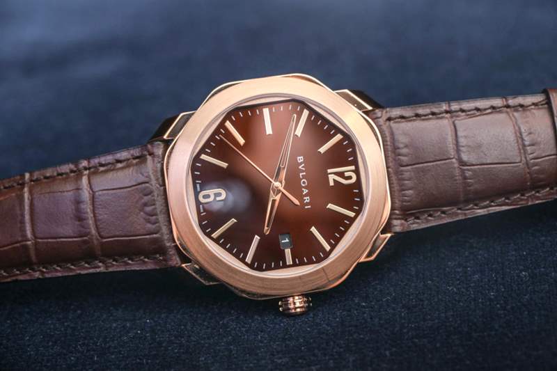 寶格麗還利用 Octo Roma 系列推出了全新的棕色表盤顏色。與他們提供的藍(lán)色相似,棕色表盤是內(nèi)部生產(chǎn)的(請(qǐng)參閱此處寶格麗如何在此處制作手表表盤)并使用類似于車身面板涂漆方式的仔細(xì)多層漆漆技術(shù)完成,但更微型和謹(jǐn)慎的態(tài)度。Bulgari Octo Roma 手表上的溫暖金屬棕色表盤采用鋼制表殼,與 18k 玫瑰金表殼相得益彰。