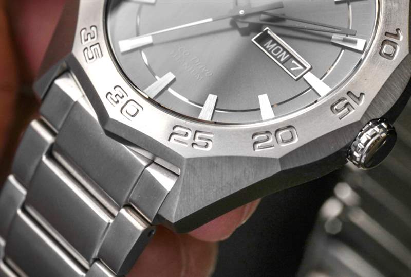 對我來說,這個表殼設計方向始于幾年前價格更高的Citizen Eco-Drive Satellite Wave F100 手表系列(在此處查看)。在那里,您看到西鐵城探索了這種美妙的現代風格,在我看來,它很好地展示了品牌的實力。F100 也是鈦合金的,但即使價格更貴,我也不認為它是超級鈦合金。因此,Citizen Eco-Drive Super Titanium AW0060 系列的價值是非常真實的。再次提醒您,Super Titanium 的重點在于其耐刮擦性。普通鈦既堅固又輕巧,但很容易劃傷。Super Titanium 經過涂層處理,其抗劃傷性(表面強度)是普通鈦的五倍。