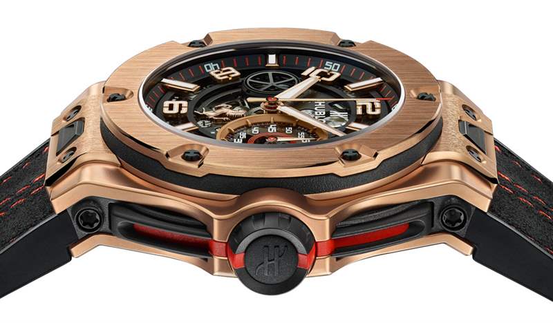 對于這些 2016 Hublot Big Bang UNICO Ferrari 手表,我最喜歡的設(shè)計(jì)更新是表冠和按鈕。表冠保持了以前整潔的扭鎖系統(tǒng),但外觀煥然一新。舊版本的推桿很酷,但現(xiàn)在更加流線型并安裝在表殼中。它們的靈感來自法拉利車廂的踏板,并配有在表冠上相交的雙紅色條紋。雖然您在任何圖片中都看不到它,但表殼的另一側(cè)現(xiàn)在在表殼的左側(cè)輪廓上印有“法拉利”字樣。廣告訊息廣告信息結(jié)束