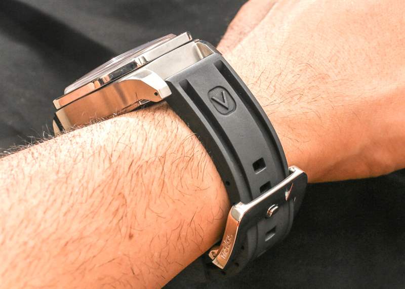 MoVas 為 MoVas Military Chronograph II 提供橡膠和皮革表帶選項。很高興有這樣的附加物品,但皮革表帶帶有一些皮帶扣式表扣,坦率地說不適合我的表帶和表殼。橡膠表帶較硬,這意味著它在彎曲時不那么靈活,但比善意但不可行的皮革表帶和表扣選項要好得多。截至目前,MoVas 網站為 Military II 提供了五種不同的表帶選項,鑒于像這樣一個小品牌的快速發展速度,我很確定在收到手表后的一年多內,我的特別表帶問題沒有實際意義。廣告訊息廣告信息結束