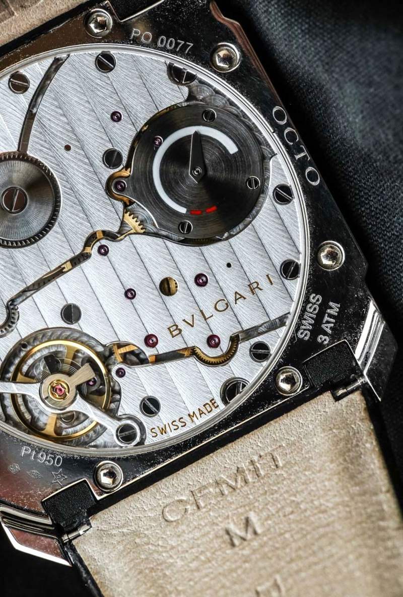 BVL 128 機芯以現代 4 赫茲頻率運行,并具有 70 小時的長動力儲存(對于如此薄的機芯)。機芯通過偏心小秒盤指示小時和分鐘。奇妙的是,寶格麗決定在機芯后部加入一個動力儲存指示器——這一功能對我來說真的提升了“想要”的水平,因為我覺得動力儲存指示器幾乎是必須的(主觀選擇)手動上弦手表。否則,我只是一直強迫性地給手表上弦。