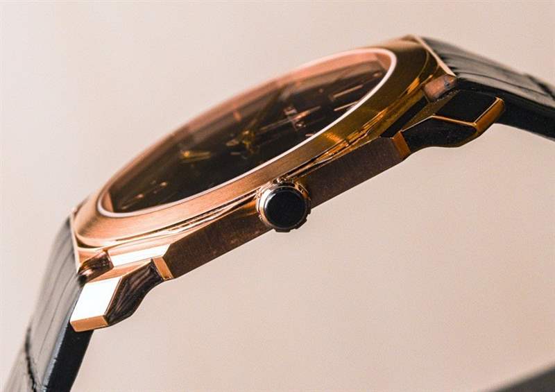 寶格麗Octo Finissimo真的很薄。稍后我將介紹機芯,但寶格麗 Octo Finissimo 的整個表殼厚度僅為 5 毫米,感覺就像是表帶的延續。我應該提到的是,目前可用的三個版本的表殼厚度略有不同。寶格麗又出一款鑲鉆表圈的鉑金款(型號102373 BGO40PDLXT),厚度為5.75mm(可以理解,因為鑲鉆增加了厚度),18k玫瑰金款比5mm厚的鉑金款厚了一根頭發絲,厚度為 5.15 毫米 – 您甚至不會注意到尺寸差異。廣告留言廣告信息結束