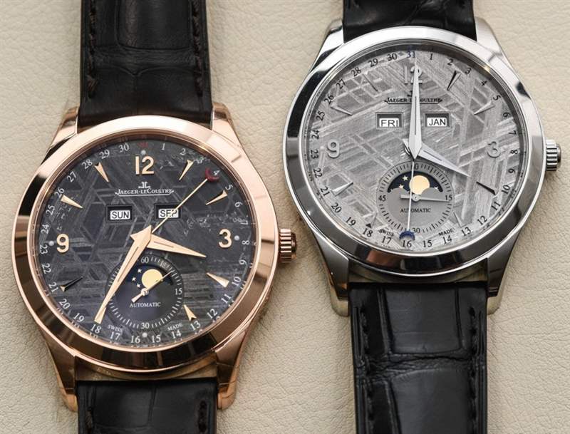 當然,如果錢不是問題,我會選擇具有高對比度表盤和非常出色的色彩組合的玫瑰金版本。只需大約一半的價格,您就可以獲得鋼制模型——這讓您很難放棄——而且從設計的角度來看,它并不算太破舊。Jaeger-LeCoultre Master Calendar Meteorite 參考價格。