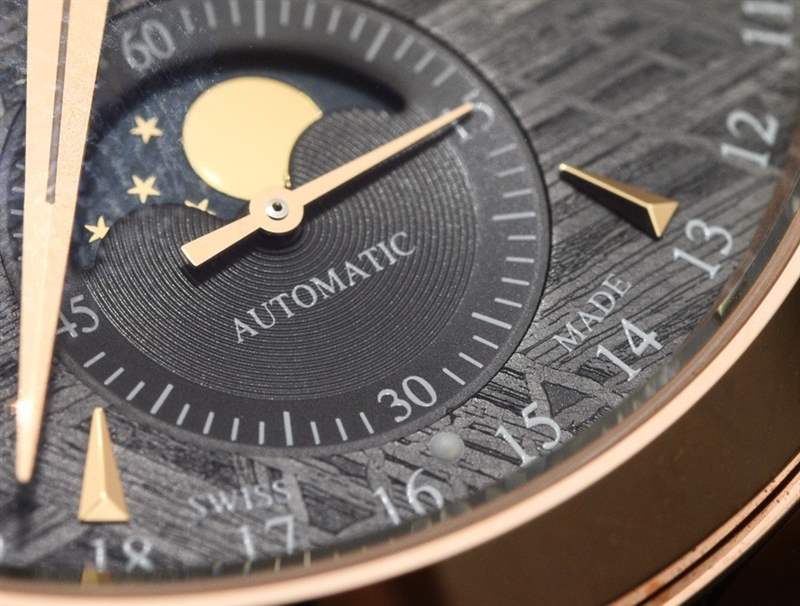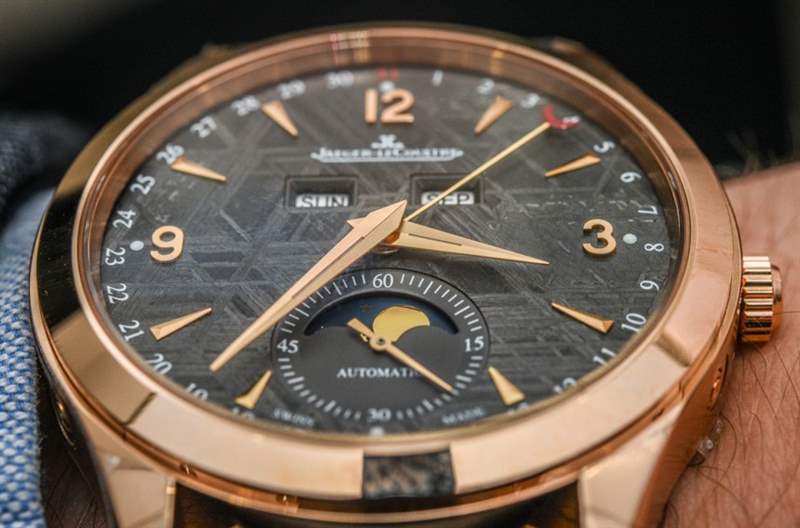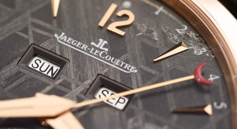 當然,積家也推出了無隕石表盤的精鋼或18k玫瑰金萬年歷腕表,搭配鍍銀表盤。那些看起來不錯,但隕石增加了視覺趣味,使時計更加獨特,在我看來,引人注目。一個合理的問題是“隕石表盤的溢價是多少?” 任一版本的答案都是 2,300 美元。因此,從標準的鍍銀表盤 Master Calendar 到 Jaeger-LeCoultre Master Calendar Meteorite 的成本要高得多。合理的價格?它并不便宜,但我想在隕石上打印更復雜,就像應用指示器和切割它一樣。最重要的是,隕石是一種稀有礦物,因此它的價格當然會高于標準金屬表盤。