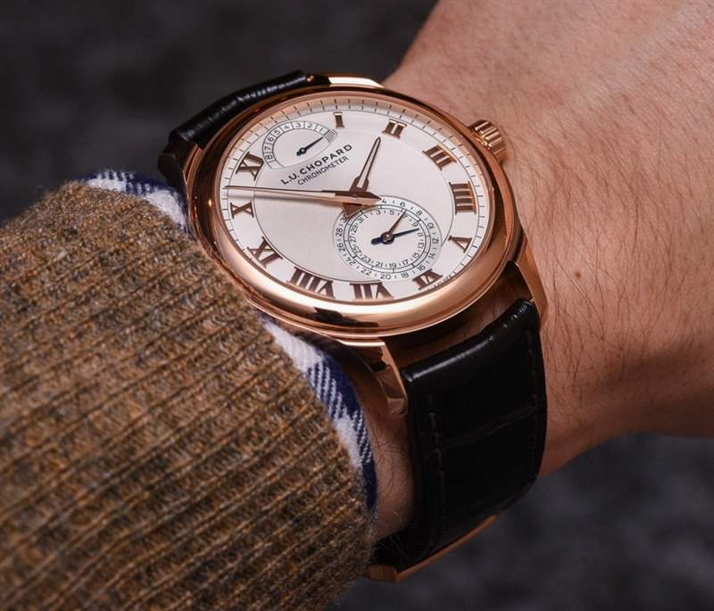 蕭邦 LUC Quattro 的寬度為 43 毫米,對于大多數人來說,它的正裝表應該是較大的一端(但一點也不厚,為 8.87 毫米)。為了舒適起見,蕭邦使用了漂亮的傾斜表耳。如果您喜歡寬邊的正裝手表,那么您一定會喜歡這個尺寸。如果您習慣了更小巧的禮服時計,那么蕭邦 LUC Quattro 可能不適合您——但蕭邦當然還有其他更小的選擇(它們的動力儲存不會超過一周)。