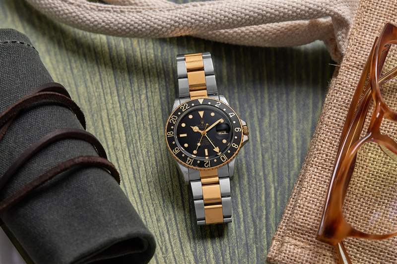 一個(gè)星期五,下午6點(diǎn)15分,寫這篇文章的時(shí)候,我的內(nèi)心有些糾結(jié):我喜歡這只表嗎?我又回到了我的雙色手表難題:它不完全是金,也不完全是鋼,感覺它試圖成為一切,但又不完全。在我看來,尤其是雙音 GMT,因?yàn)槎嗄陙砦乙恢痹趯?dǎo)師的手腕上看到它;本能地,它最好屬于一位紳士的手腕,他贏得了自信,可以毫不費(fèi)力地穿上一件帶有金色紐扣的雙排扣海軍藍(lán)色夾克。不知怎的,我覺得我還沒有資格戴這塊表。但是在看了這個(gè)例子并長時(shí)間停頓之后(是的,我有想得太多的傾向),我決定是時(shí)候回過頭來擁抱這個(gè)半金半鋼的創(chuàng)作了。我喜歡表盤上有簽名“1986 年勞力士 GMT-Master Ref.?蒂芙尼 (Tiffany & Co) 零售的 16753 雙色調(diào)