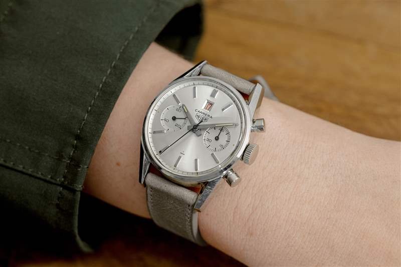 我在 HODINKEE 的復(fù)古辦公桌上的短暫任期內(nèi)寫過幾次關(guān)于 Heuer 和 Carreras 的文章,如果現(xiàn)在還不清楚,我是它的忠實(shí)粉絲。此外,如果我們的 TAG Heuer 合作,我們在這里喜歡在 Heuer 最早的帶有 Carrera 名稱和圓形表殼的手表上添加非常實(shí)用的日期。直到更深入地研究 Dato 手表,我才意識到,這些手表的前身啟發(fā)了我們的限量版,而且為了我的錢,它甚至可能更好看(不要告訴本)。盡管不對稱表盤有著悠久的傳統(tǒng),但我真的很喜歡更平衡的外觀。此外,在功能上,我真的很喜歡能夠向下看一眼正在運(yùn)行的秒數(shù)并知道我的手表正在運(yùn)行。1960 年代 Heuer Carrera ‘First Execution Dato 45’ Ref.?3147S