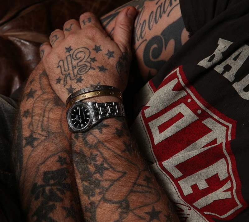 在 Halverson 位于洛杉磯的私人、僅限預約的零售和工作室會面,我們坐下來討論手表、藝術和品牌建設。Halvorson 和他同時代的許多人一樣,既是工匠又是藝術家——他本人就是他審美的行走體現,身上裝飾著精心設計的服裝和紋身。MadeWorn 確實是他從一開始就想做的夢想項目,并且在 2005 年出售他成功的業務 Junkfood Clothing 后得以實現。如今,Halvorson 收集東西,制作服裝和配飾,并在我可以輕松描述的地方閑逛是整個洛杉磯最有趣的零售空間之一。