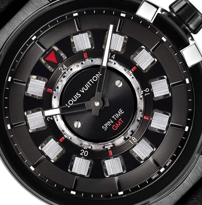 Louis Vuitton 還決定添加其非常棒的Tambour Spin Time 手表的新版本(此處首次介紹)Tambour éVolution in Black 系列。Louis Vuitton Spin Time 于 2010 年首次推出,第一個版本至今仍是我的最愛。2015 Louis Vuitton Tambour éVolution Spin Time GMT Black 在某些方面與原始型號不同,但它確實保留了核心概念 – 即通過表盤上轉動的小立方體顯示第二時區(qū)時間就是那個時候。全新 Spin Time 表盤高度簡約,搭載路易威登自產(chǎn) LV111 自動上鏈機芯,與原版 Spin Time 不同。不同的是,現(xiàn)在第二時區(qū)立方體是通過表冠來調整的,而在以前的 Spin Time 表款中,表殼左側有按鈕可以向前或向后推進第二時區(qū)。