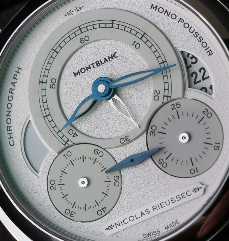 請(qǐng)注意,萬(wàn)寶龍向尼古拉斯·凱世 (Nicolas Rieussec) 致敬的版本的計(jì)時(shí)碼表讀數(shù)略有調(diào)整。從一開始,萬(wàn)寶龍 Nicolas Rieussec 手表就采用圓盤與指針來(lái)指示計(jì)時(shí)讀數(shù)。一切都沒(méi)有改變,但你閱讀信息的地方已經(jīng)移到了一邊,沿著雙倍大小的藍(lán)鋼指針。