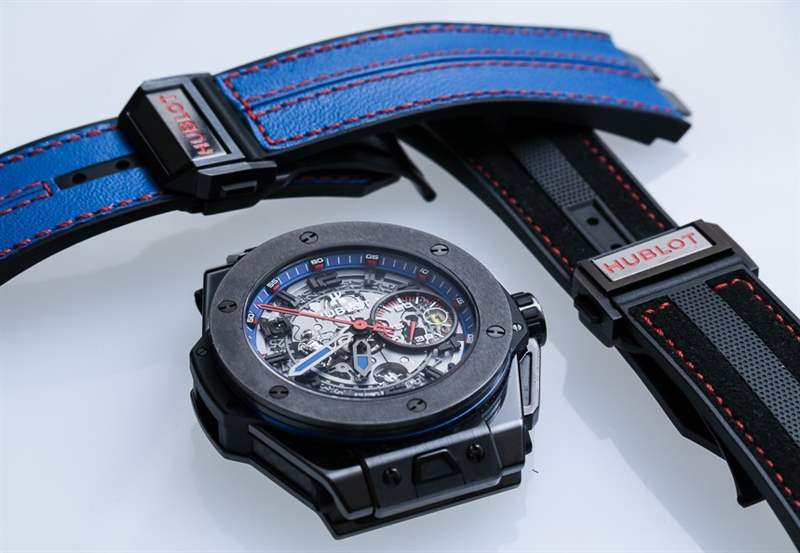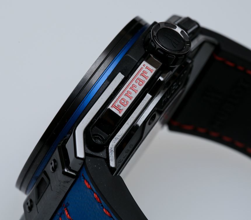現在是 2014 年,在我最初對 Hublot Big Bang 法拉利系列感興趣幾年后,我提供了一個評論。我正在審查 Hublot Big Bang Ferrari 的限量版型號之一,專為零售商 Westime 經營的洛杉磯比佛利山莊 Hublot 精品店生產。這種特殊的配色方案可能不是我最喜歡的,但它很有趣,主要是藍色調和紅色調。如您所見,Hublot Big Bang Ferrari 配有兩條表帶,我相信它們都有。除此之外,Hublot 還使用 Big Bang 法拉利手表為 Big Bang 手表實現了一項新功能——快速釋放表帶。廣告留言廣告信息結束