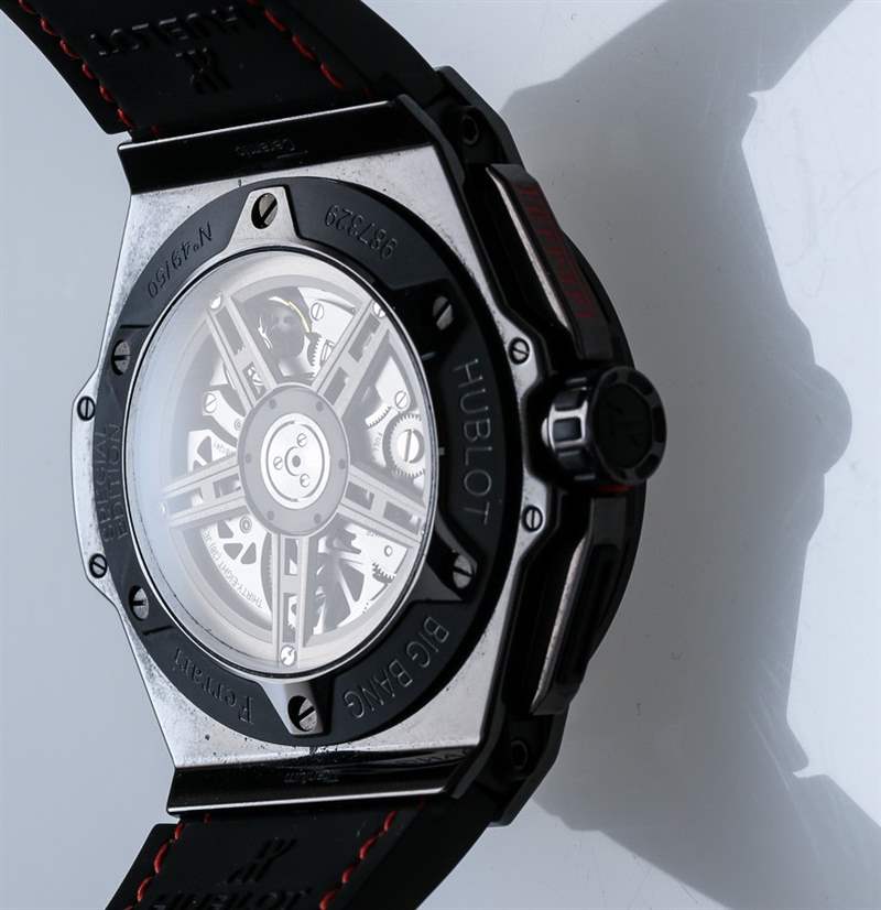 在其他型號上,您會發現其他材料,例如 18k 金和以無數種方式加工的碳纖維。Big Bang Ferrari 寬 45.5 毫米,是宇舶表自 2004 年首次推出以來首次對其 Big Bang 表殼進行實質性升級。宇舶表將尺寸從 44 毫米寬增加了 1.5 毫米,整體上增加了更多陽剛之氣,同時使它更加現代的外觀。像這樣的設計處于兩種審美偏好之間的十字路口。有些人喜歡干凈、內斂、經典的線條,有些人則喜歡前衛、現代和有些強烈的設計。與其他響亮的事物一樣,Hublot 腕表必然會引起人們的注意,因此贊美和抱怨都是平等的。