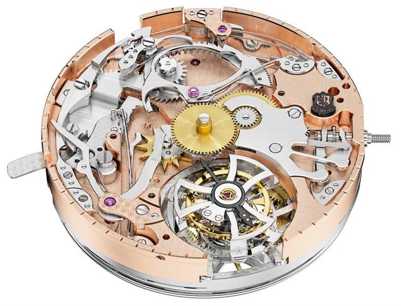 Roger Dubuis Hommage Minute Repeater Tourbillon Automatic 就是這樣一款生動復(fù)雜的機(jī)械機(jī)芯,將陀飛輪與三問報(bào)時(shí)相結(jié)合,并提供自動上弦功能。后一個(gè)元素非常有趣,因?yàn)檫@款手表具有“雙微型轉(zhuǎn)子”。世界衛(wèi)生大會…?沒錯,Roger Dubuis Hommage Minute Repeater Tourbillon Automatic 沒有一個(gè)完整的擺陀或一個(gè)較小的微型擺陀,而是有兩個(gè)微型擺陀。為什么?好吧,我不完全確定,Roger Dubuis 并未聲稱對此有任何特別的功利目的。我認(rèn)為他們之所以這樣設(shè)計(jì),是因?yàn)榱_杰杜彼有點(diǎn)前衛(wèi)。這么說吧,這不是我第一次看到雙微型擺陀了……在機(jī)芯背面有兩個(gè)較小的擺陀在旋轉(zhuǎn),這看起來確實(shí)很獨(dú)特。廣告留言廣告信息結(jié)束