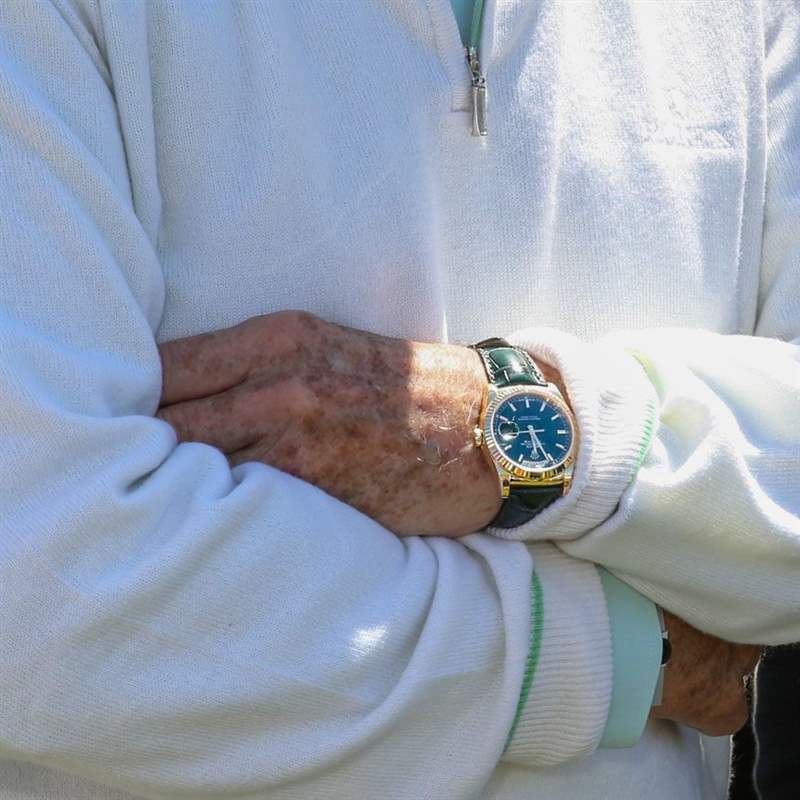 當你看到 Jackie 欣賞自己手腕上的手表時,你可以看出手表人的跡象。在考慮設計的格式塔時,有一種敏銳的目光會吸收所有細節。他的手贊賞地撫摸著水晶玻璃、表圈和手鏈。這是 Jackie 佩戴過無數次的手表,至今仍給他留下深刻印象。此刻,他佩戴的是 18k 金 GMT-Master II,但在過去的幾天里,我看到他佩戴的是 Everose Cosmograph Daytona,還有搭配綠色表帶的全新綠色表盤金質 Day-Date。綠色是他的顏色,英國賽車的顏色,它恰好也是勞力士的顏色。