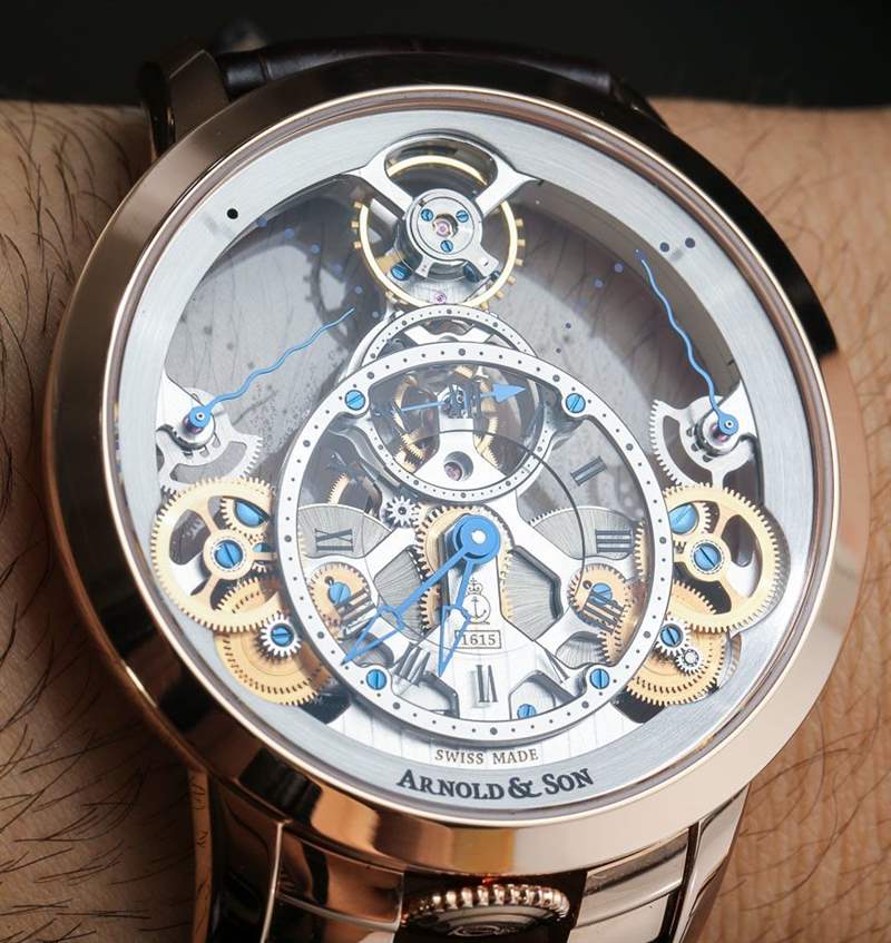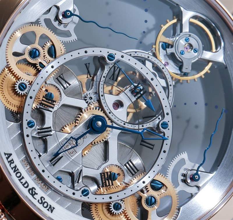 也許這就是我想從人們那里得到的——讓他們詢問我手腕上的亞諾表時間金字塔,這樣我就可以向他們傳授鐘表學(xué)知識,并向他們展示這款機芯的工作原理。盡管 Arnold & Son Time Pyramid 并不是一款完全基本的機芯,但人們可以很容易地從位于藍寶石三明治之間的經(jīng)過藝術(shù)設(shè)計的鏤空機芯中看出機械表的基本工作原理。
