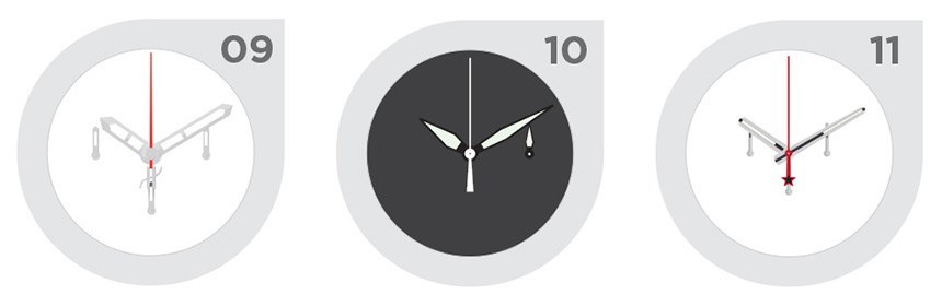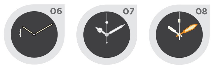 我們只看到這些您看不到的每個(gè)表盤上的指針,我們注意到了什么?在大多數(shù)情況下,手的大小和比例都合適。這意味著它們?cè)诒肀P上盡可能地延伸,分針與時(shí)針不同或易于識(shí)別。因此,重要的不僅僅是手,還有它們之間的相對(duì)設(shè)計(jì)。
