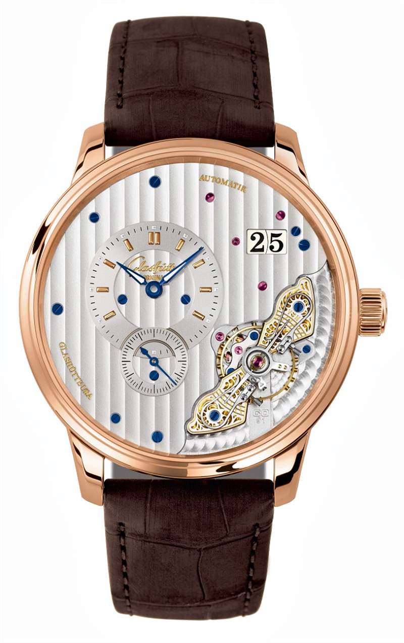 這是一款 42 毫米寬的“全尺寸”格拉蘇蒂原創(chuàng)“Pano”手表,對(duì)于某些型號(hào),它已縮小到 40 毫米寬,但我更喜歡 42 毫米寬的表殼。該機(jī)芯具有 42 小時(shí)的動(dòng)力儲(chǔ)存,包括一個(gè)偏心的時(shí)間和秒顯示,以及一個(gè)“全景日期”顯示,這就是 Glashutte Original 對(duì)其大日期窗口的稱(chēng)呼。之前的 PanoInverse 手表將這個(gè)空間用作動(dòng)力儲(chǔ)存指示器。非常感謝包含日期窗口,但有些東西讓我覺(jué)得從表盤(pán)到窗口的過(guò)渡有點(diǎn)粗糙——好像某種類(lèi)型的窗口或斜邊可能很好。