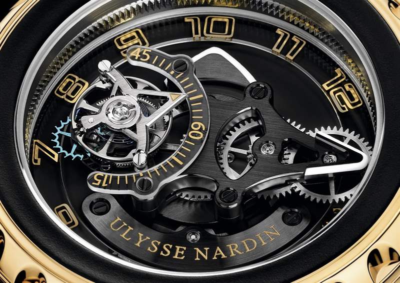 Freak Diavolo,現(xiàn)在 Phantom 添加到組合中的是陀飛輪。擒縱機(jī)構(gòu)通常放置在 Freak 上,而 Freak Phantom 配備陀飛輪。這是在分針的非指示端。從技術(shù)上講,它是一種陀飛輪,隨著整個系統(tǒng)的移動而放置在輔助軌道旋轉(zhuǎn)木馬式陀飛輪中……因為它是分針的一部分?;糜暗耐语w輪是飛行的,秒針采用藍(lán)寶石水晶指示盤,做工精美。