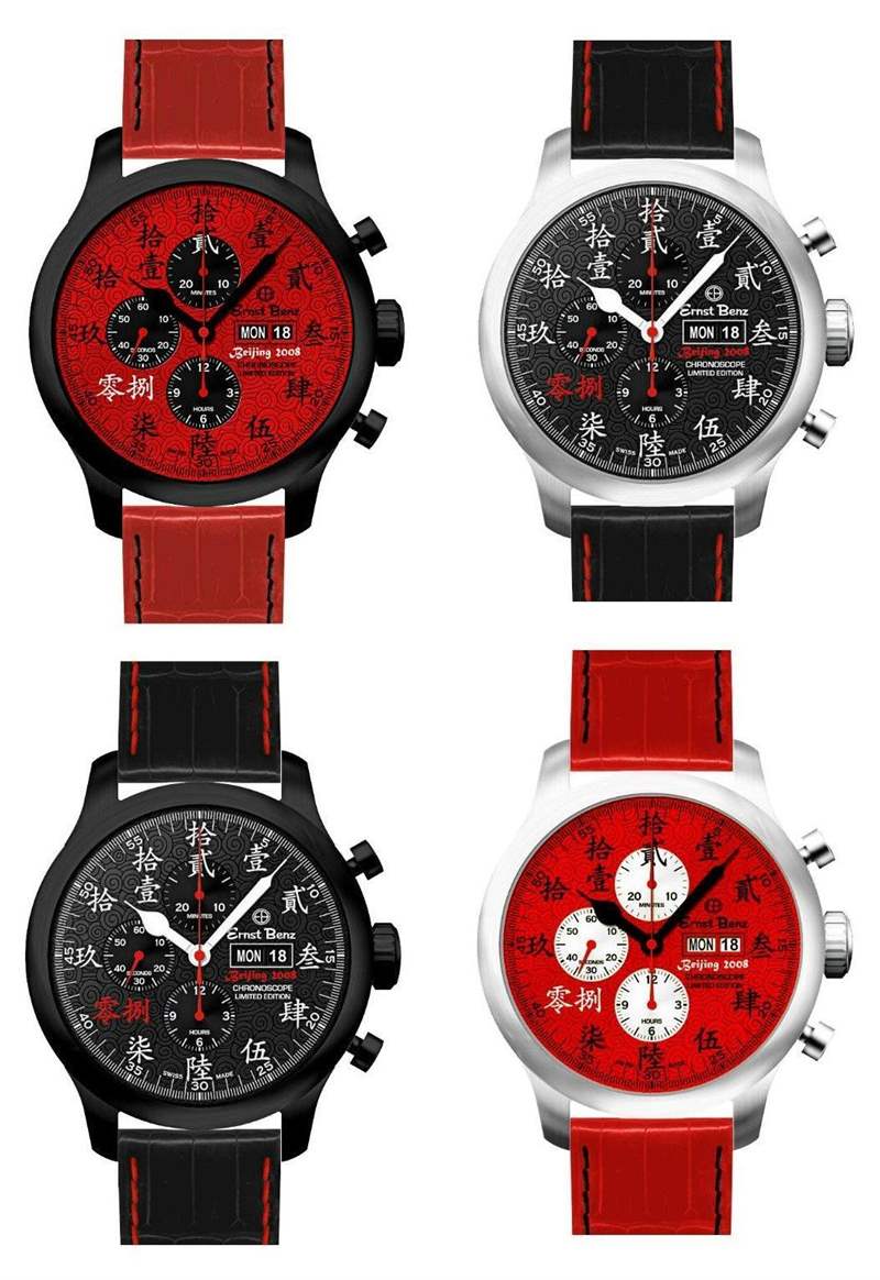 那么,是什么讓看著這些中國(guó)主題的恩斯特奔馳Chronoscope手表如此愉快呢?好吧,對(duì)于一個(gè)人來(lái)說(shuō),我們似乎都喜歡紅色和黑色。無(wú)論是紅色搭配黑色飾邊,還是黑色搭配紅色飾邊,它總是看起來(lái)很酷。你可以拿一個(gè) 30 美元的卡西歐,讓它變成黑色和紅色裝飾;瞬間涼爽。然后,你有我們西方人不習(xí)慣的東西;中文數(shù)字。不,我看不懂它們,但根據(jù)它們的位置,我可以猜測(cè)它們的數(shù)字是 1 到 12。實(shí)際上,“8”是不同的,因?yàn)樗硎尽?8”代表奧運(yùn)會(huì)年。而且,正如你們?cè)S多人所知,8在中國(guó)文化中是一個(gè)幸運(yùn)數(shù)字。