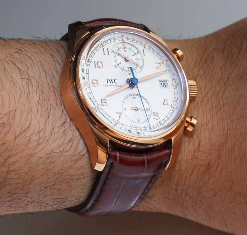 關(guān)于 IWC 葡萄牙經(jīng)典計時碼表,您需要了解的兩個最重要的細節(jié)是它有一個 42 毫米寬的表殼(有精鋼款或這里所見的 18k 玫瑰金款),以及它包含 IWC 萬國表自制機芯 89361自動計時機芯。42 毫米對于葡萄牙人來說是一個很好的尺寸,與非“經(jīng)典”型號相比,這些手表的表殼更厚、更陽剛。你有更結(jié)實的凸耳和更厚的邊框,現(xiàn)在已經(jīng)變成圓形而不是更平坦的形狀。雖然 42 毫米寬的表殼更大,但考慮到表殼的所有柔和曲線,它具有更光滑的外觀。有些人會更喜歡標準葡萄牙語的更簡約的角度方法,但這實際上是一個品味問題以及手表在手腕上的位置。