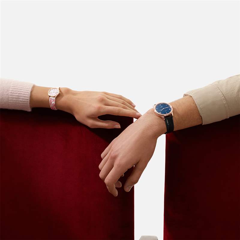 拱形米白色琺瑯表盤由「大明火」工藝制成,搭配 Moonshine 18K金鉆石拋光指針和玫瑰色羅馬數(shù)字刻度。該表的「茹伊印花」(Toile de Jouy)織物表帶,飾有紅色花卉圖案,別具一格。內(nèi)部搭載歐米茄4061電子機芯,有著48個月的長效運行時間,特別地實用。經(jīng)典的小巧尺寸搭配充滿活力的風(fēng)格,能夠讓現(xiàn)代女士的腕間呈現(xiàn)迷人的魅力。