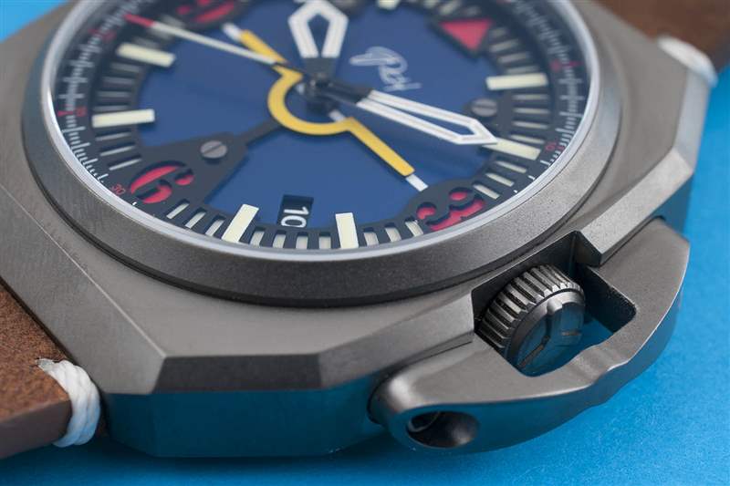 這款手表的名字來源于飛機上的姿態計(不要與高度混淆),指示飛機相對于地平線的方向。雖然靈感顯而易見,但它很微妙,不會打在你臉上,也不會讓人感覺像是在向 Bell & Ross 致敬。帶有藍色 AR 涂層的藍寶石水晶玻璃使表盤清晰可見。廣告留言廣告信息結束